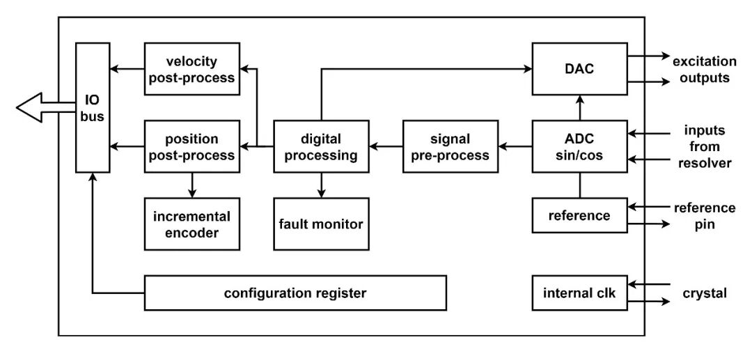 系统故障检测。故障检测电路可以检测旋变的信号丢失、超范围输入信号、输入信号失配或位置跟踪丢失。各故障检测阈值可以由用户单独编程,以便针对特定应用进行优化。